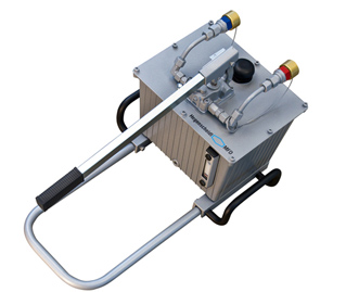 Ruční čerpadlo je plnohodnotný agregát pro menší nakolejovací operace jako zvedání, spouštění. Zejména pro nasazení, při kterých není k dispozici vnější energie. Případně nelze použít čerpadlo se spalovacím motorem, kvůli nebezpečí výbuchu. Díky protitlakovému systému lze provést všechny funkce jako je zvedání, tlačení, spouštění a tažení bez omezení a to za plného provozního tlaku 30 MPa.